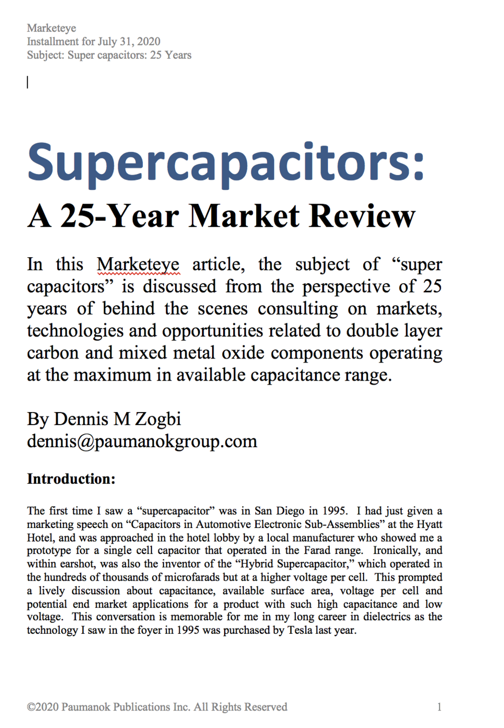 WHITE PAPER: Supercapacitors: 25 Year Market Review