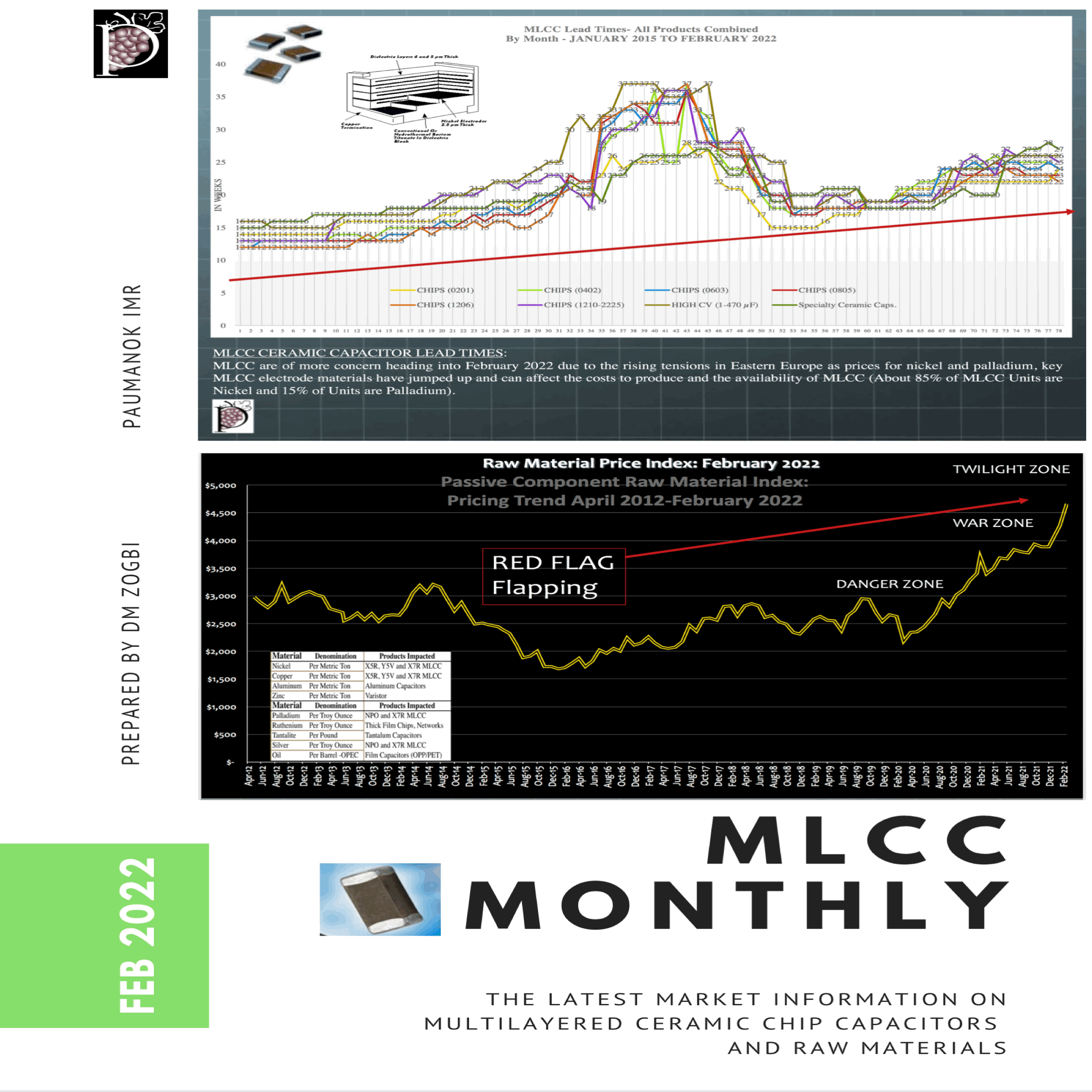 This report is a monthly update that covers the global market for multilayered ceramic chip capacitors and is part of the 8532 2.4 Industrial Blockchain Project for monitoring all aspects of ceramic chip production and consumption for the purposes of ESG Compliance and Green Bond Investing. This report updates the reader on the supply chain for titanium, barium, nickel, copper, palladium and silver to the MLCC manufacturers, the financial health of the vendors; lead times for 7 sub-types of MLCC by case size and performance and overall trends and directions for the industry.