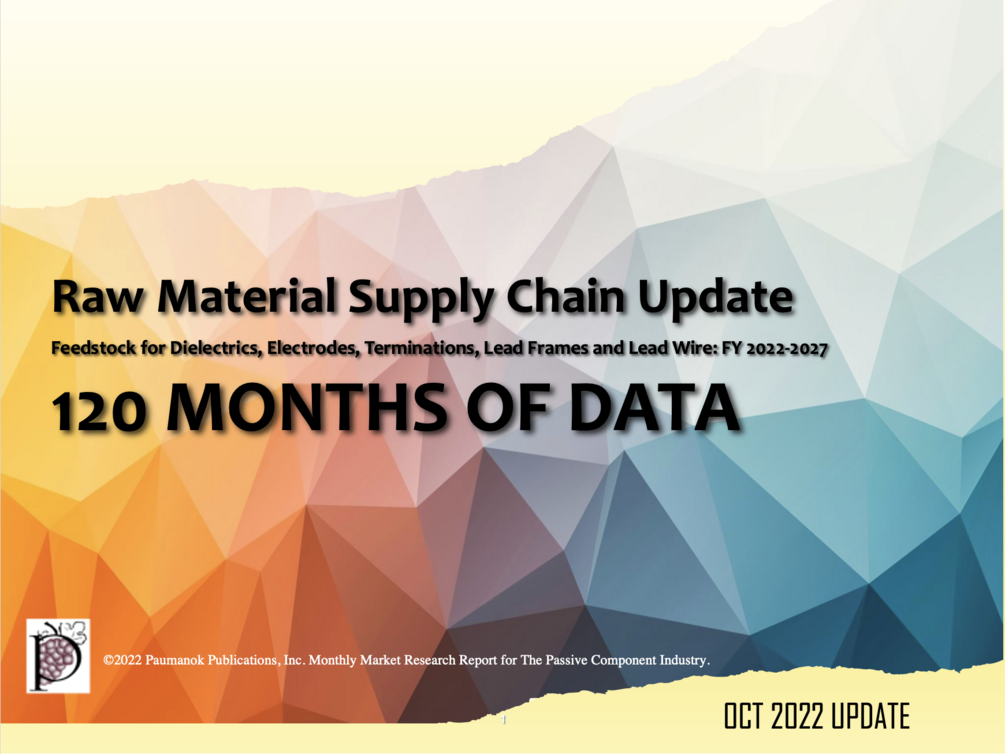 Raw Material Supply Chain Update: October 2022 {Feedstock for Dielectrics, Electrodes, Terminations, Lead Frames and Lead Wire}